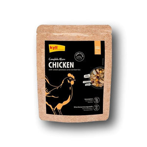 Kyli Complete Menu Chickenbietet deinem Vierbeiner alles, was er braucht: saftige Fleischstücke, wertvolle Kohlenhydratquellen, frische Früchte und knackiges Gemüse – alles in einer Portion, ganz ohne unnützen Kram!