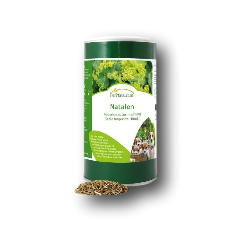 PerNaturam Natalenist für die letzte Trächtigkeitsphase und die Geburt da diese Höchstleistungen von der Hündin erfordern. PerNaturam Natalen ist eine Geburtshilfe-Mischung, die ernährungsbedingte Imbalancen ausgleicht, den Stoffwechsel aktiviert, die Durchblutung der inneren Organe verbessert und so den Verlauf der Geburt erleichtert. Ideal ist die Kombination mit Komplement Natal zur Abdeckung des erhöhten Nährstoff- und Vitalstoffbedarfs während Trächtigkeit und Aufzucht.