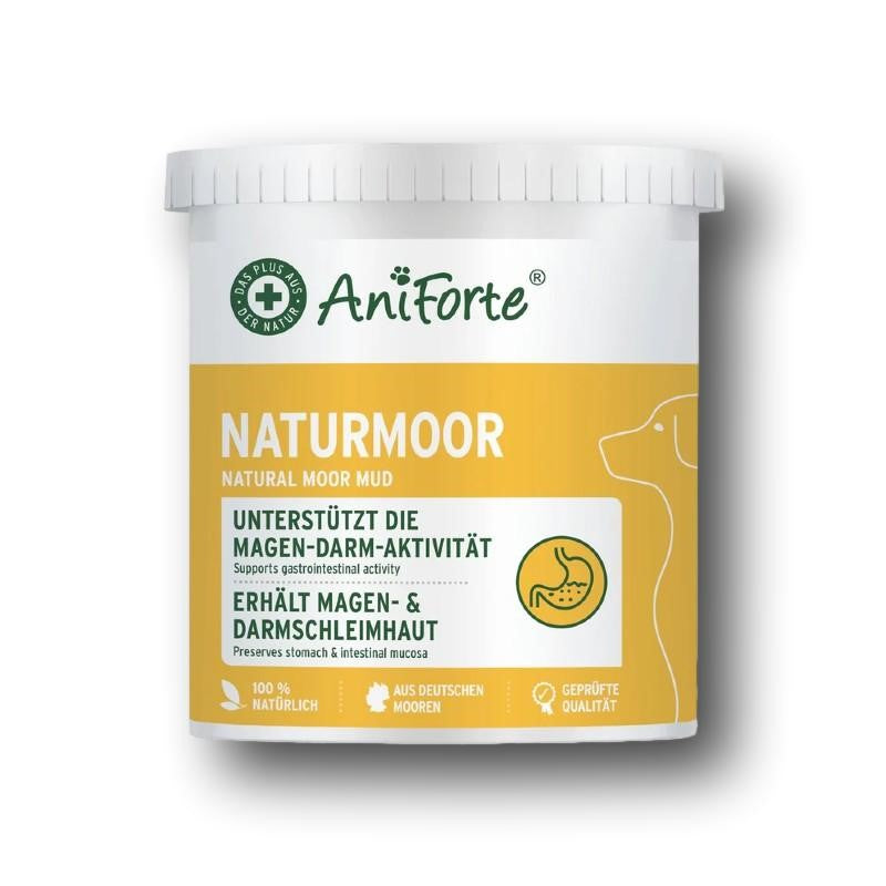 AniForte Heilmoor est un produit 100% naturel pour favoriser la digestion et renforcer le système immunitaire. Les acides humiques et fulviques contenus lient les substances nocives dans l'intestin et assurent une meilleure activité gastro-intestinale.