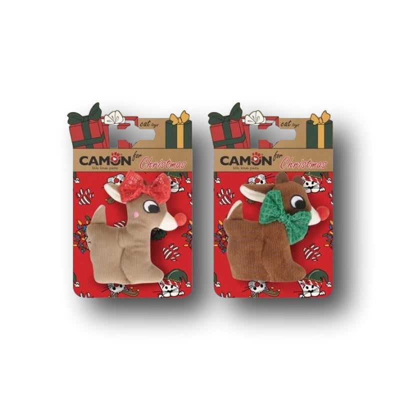 Jouet pour chat Camon cerf avec herbe à chat , jouet en peluche mignon et drôle pour chats, décoré d'un nœud. Ils contiennent de l'herbe à chat pour les rendre encore plus attrayants pour votre compagnon à quatre pattes.