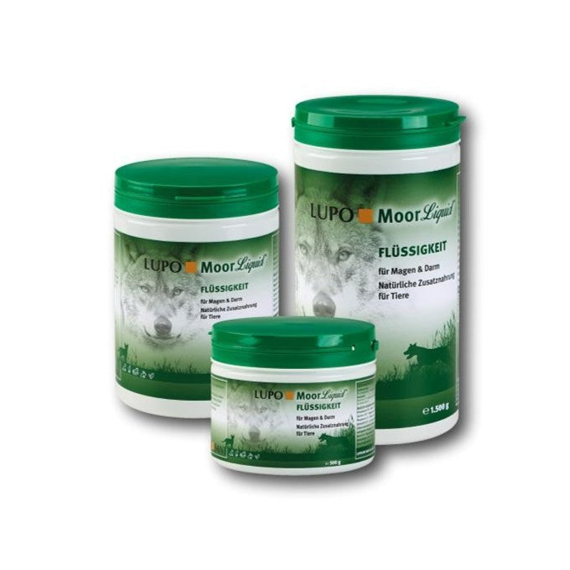 Luposan MoorLiquid est la puissance primordiale de la nature. Aliment complémentaire pour chiens, chats et chevaux.