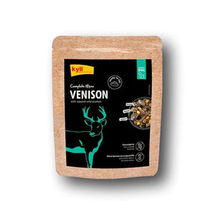 Kyli Complete Menu Venisonbietet deinem Vierbeiner alles, was er braucht: saftige Fleischstücke, wertvolle Kohlenhydratquellen, frische Früchte und knackiges Gemüse – alles in einer Portion, ganz ohne unnützen Kram!
