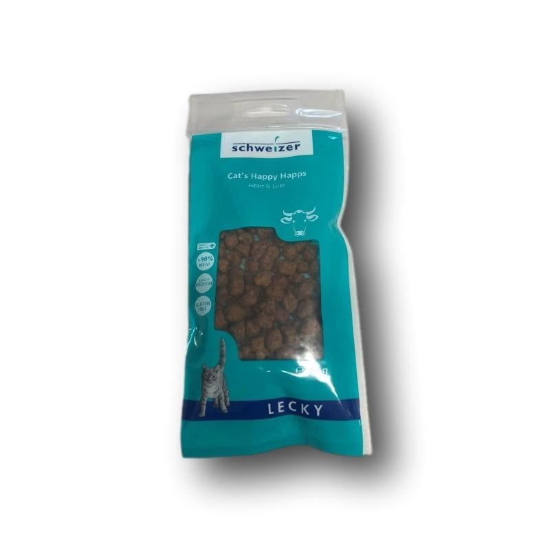 I Lecky Cat Happy Happs Heart & Liver sono dei mini-bocconcini morbidi e delicatamente essiccati, con tanto cuore e fegato di manzo svizzero. Una sorpresa per tutti i gatti!