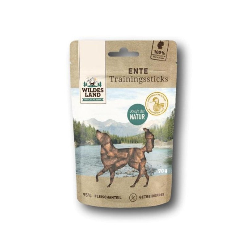 Wildes Land Training Stick Duck supporta la salute del tuo cane anche durante l'addestramento. Ottimizza l'addestramento del tuo cane rinforzando positivamente il comportamento desiderato con uno spuntino sano e naturale.