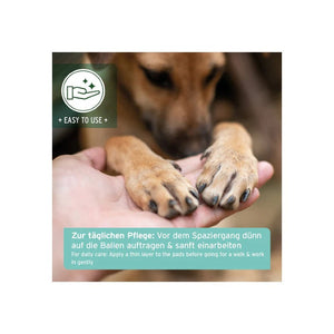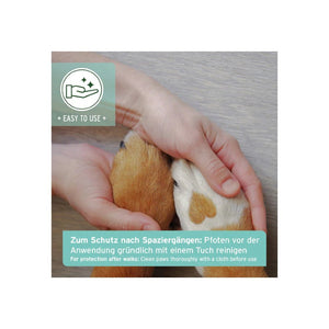 Zur täglichen Pfotenpflege: Trage AniForte Pfotenschutz Balsam vor dem Spaziergang dünn auf die Ballen auf und arbeite ihn sanft ein. So bildet der Balsam eine schützende Schicht und bewahrt die Pfoten zuverlässig vor äußeren Einflüssen und täglichen Belastungen.