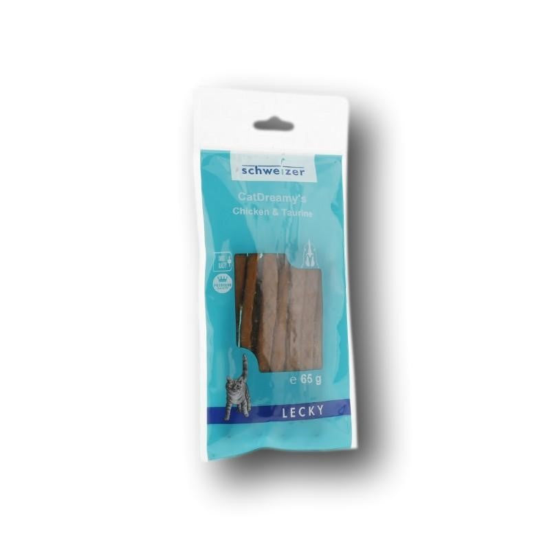 Lecky Chicken & Taurin sind leckere Sticks aus 95% Schweizer Poulet-Fleisch. Ein Genuss für alle Katzen!